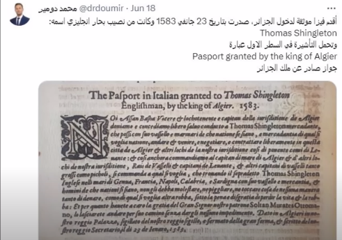اقدم فيزا في تاريخ الجزائر 1583