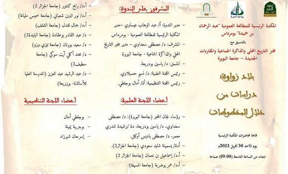 و من جهته, أكد مدير مخبر التاريخ بجامعة البويرة, مصطفى سعداوي, على أهمية “فتح آفاق جديدة للبحث الأكاديمي في المخطوطات و الوثائق التي تؤرخ خاصة للتاريخ الثقافي الوطني القديم لما له من أبعاد مرتبطة بالهوية الوطنية مع نشر هذه الأبحاث بغرض التصدي لمحاولات تشويه الحقائق و تكريس الفكر الاستعماري”.