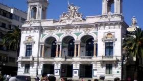 لواجهة المبنى منارتان كبيرتان يتوسطهما تمثال ضخم يمثل إلهة “الفن” تحمل بيدها قيثارة، وعلى جانبيها تمثالان أخران تمنحان واجهة المبنى عمقا فنيا وجماليا ساحرا.