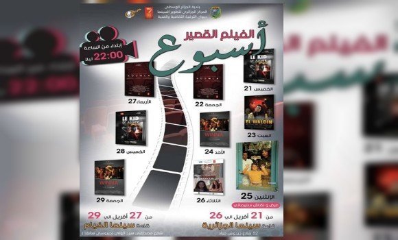 لجزائر- برمج المركز الوطني لتطوير السينما عرض ستة (6) افلام قصيرة من 21 إلى 28 ابريل الجاري بقاعتي “الخيام” و “آلجيريا”, حسبما علم من المنظمين.