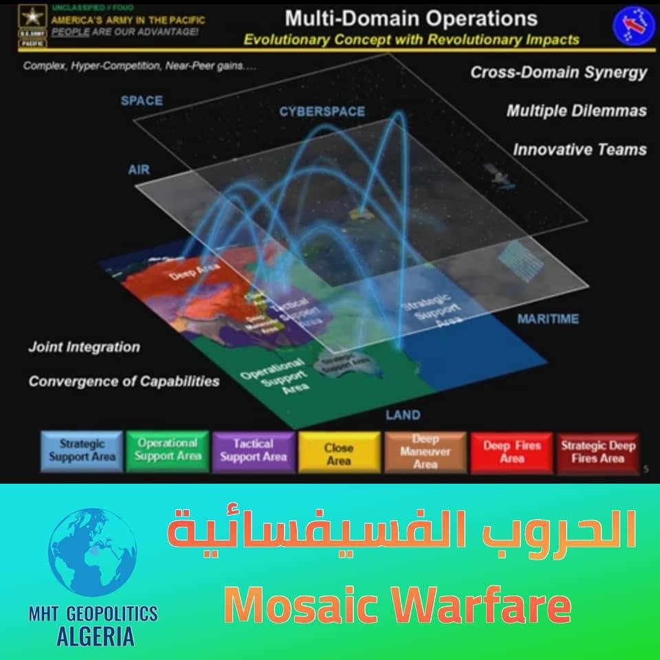 بينما لازالت الأغلبية الساحقة من الناس تجد صعوبة في استيعاب مفهوم حروب الجيل الرابع أو ما يعرف بالحروب الهجينة، بدأت الولايات المتحدة بتبني مفهوم جديد و هو “الحروب الفسيفسائية Mosaic warfare”, جاء لاستجابة لصعود الصين و روسيا كقوى مهددة للهيمنةالأمريكية.