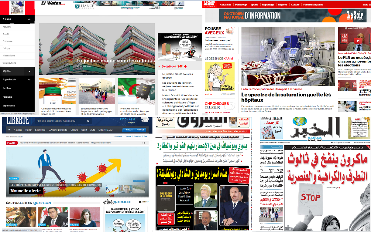 هذه جرائد اليوم 26-10-2020 و كل جرائد الاسبوع على هذه الشاكلة، لا بل كل جرائد الشهر و السنة تغرد داخل سرب الرداءة … للأسف