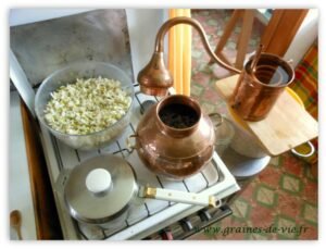 وهذا ما يمكن من الحصول على ماء ورد خالص مقطر يسمى “راس القطار” يجمع في ـ حنفية للتحكم في التقطير .