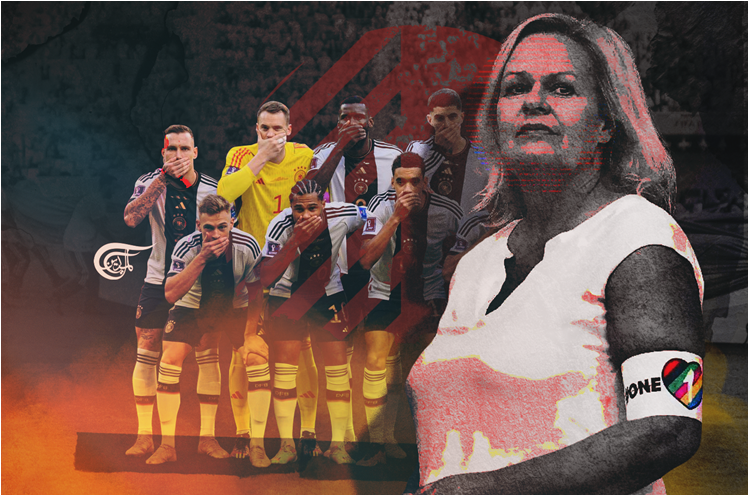 وجاء تكميم أعضاء المنتخب الألماني أفواهَهم، احتجاجاً على منع “الفيفا” وقطر ظهور شارة الشذوذ الجنسي، ليعكس مستوى هذا الشطط، كأن هذا المنع طال جوهر الحرية في الثقافة الغربية، وهي حرية تخالف الفطرة الإنسانية بزواج الرجل بالرجل، والمرأة بالمرأة، تحت عنوان خادع، تم تقديمه في المونديال عبر شارة: “حب واحد”.