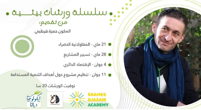 يسر فريق إيكولوجيا ديالنا  بالتنسيق مع المؤسسة الناشئة مخ ومؤسسة شمس الجزائر بالإعلان عن مجموع أربعة ورشات حول الإقتصاد الأخضر