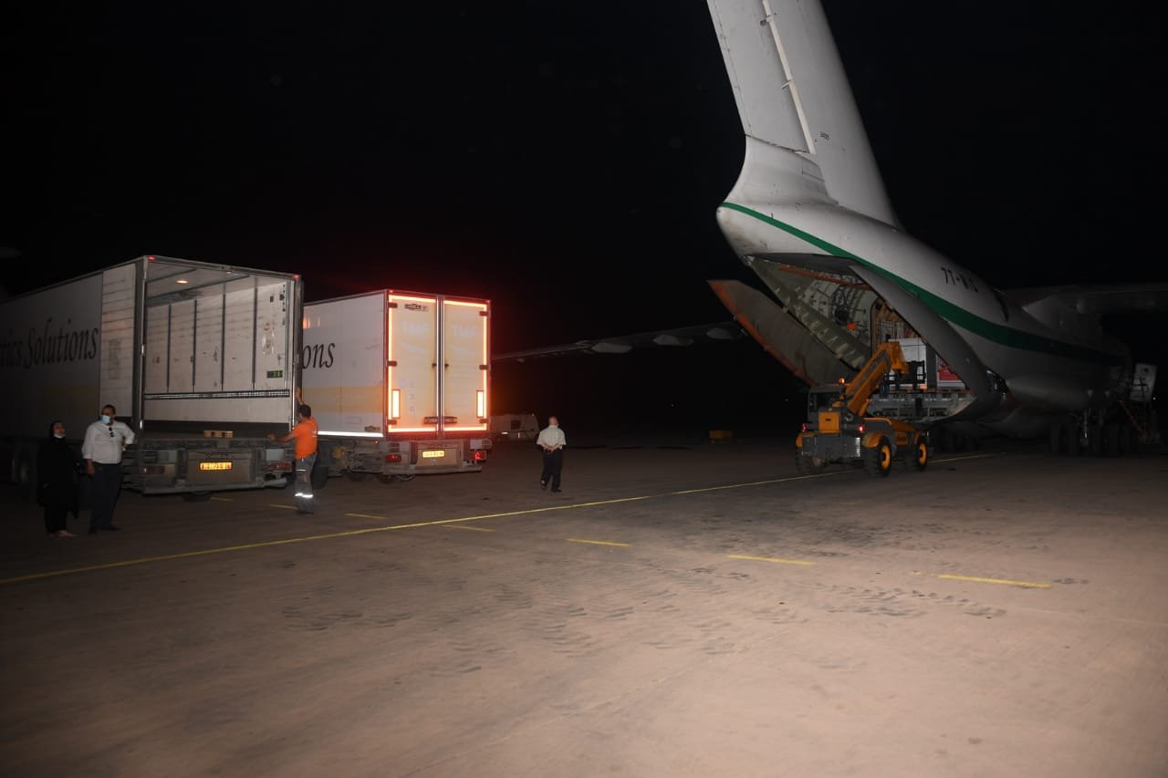 On Sunday evening, a military cargo belonging to Algeria Air Force landed at Boufarik military airport, carrying 2 million doses of Covid 19 vaccines brought from China. This reception is in the framework of supporting the efforts of the national health system and providing the necessary means to reduce the spread of covid-19, according to a statement by the Ministry of National Defense.