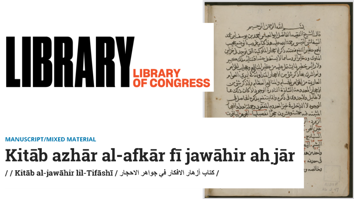 Al-Tīfāšī deals with 25 stones, devoting a chapter to each. Each chapter opens with an etymological discussion of the name of the stone, which is followed by a description of the factors causing its formation, the location of the principal mines in which it is found, and an analysis of its main physical properties, including its hardness. He then provides a list of medical and magical uses of the stone and discusses its value and price on the market, taking into account different degrees of purity and the optical properties of the stones available for sale in his time. World Digital Library.
