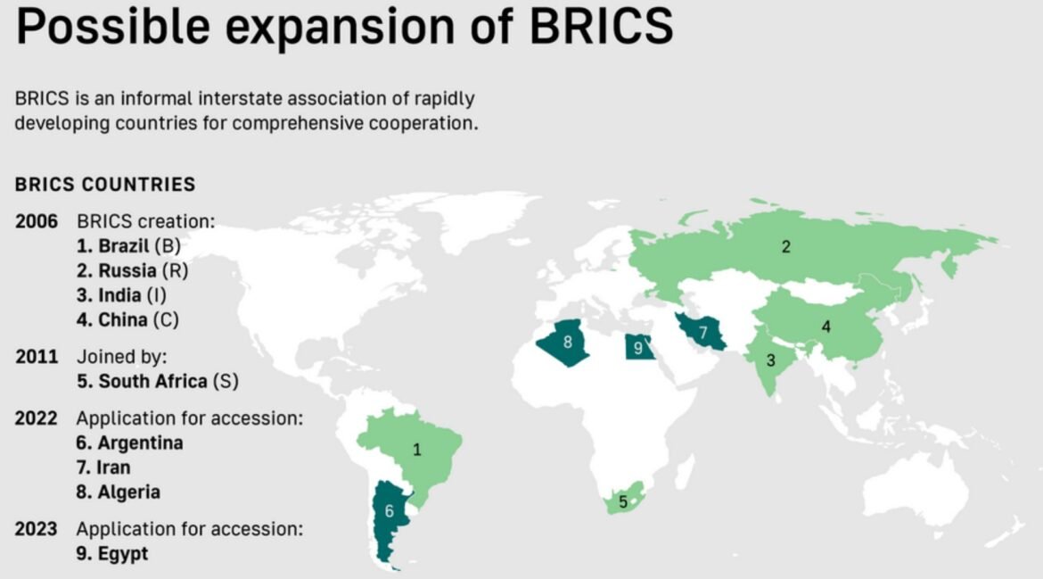 Egypt has officially applied to join BRICS, as announced on June 14 by Russian Ambassador to Cairo Georgy Borisenko. Earlier, in 2022, Argentina, Iran and Algeria also applied to join the association.