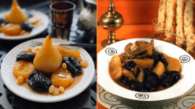 Lham lahlou can be prepared from mutton meat, plums flavored with cinnamon and orange blossom. It may also contain butter.