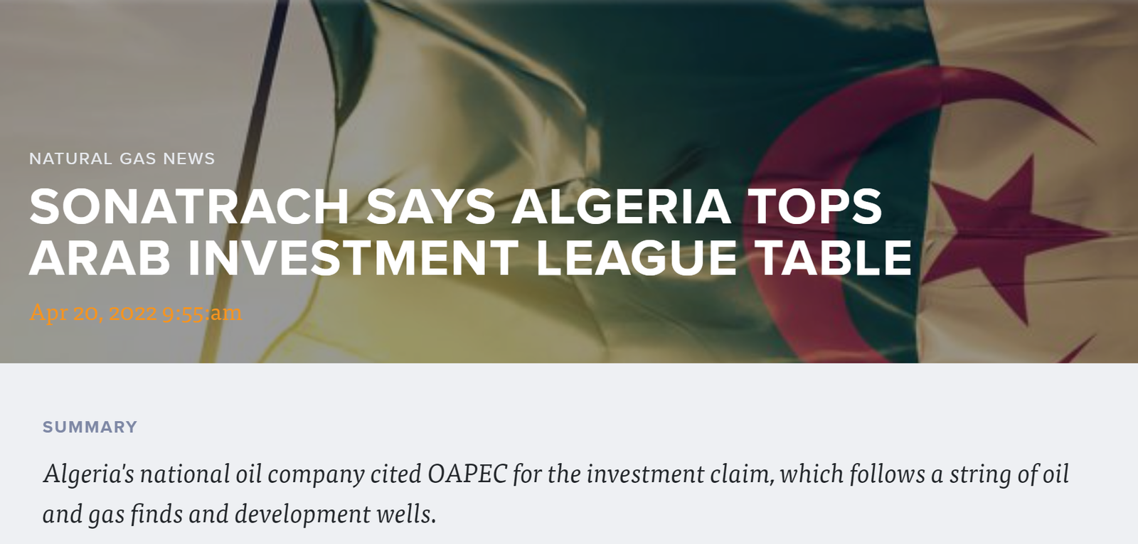 Source : https://www.naturalgasworld.com/sonatrach-says-algeria-tops-arab-investment-league-table-97711
