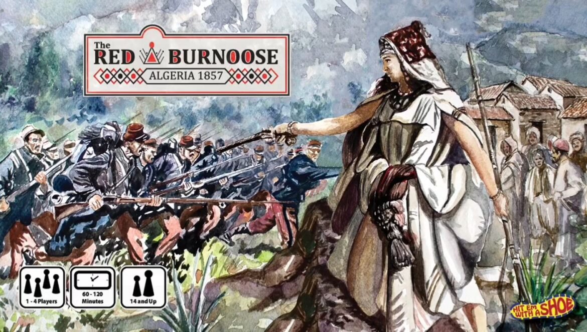 In The Red Burnoose: Algeria 1857, you will work together as Kabyle villages with other players to fend off the French using deckbuilding, area control, and dice rolling. This is a cooperative wargame for 1 to 4 players ages 14 and up. The game was designed with both those new and those more experienced with wargames in mind.