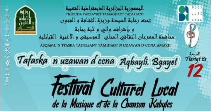 Quelque 38 artistes ont été retenus pour animer dans 4 communes (Sidi Aich, El Kseur, Amizour et Akfadou) de la wilaya de Bejaia, la 12e édition du Festival culturel local de la musique et de la chanson kabyles, dont le coup d’envoi est prévu demain après-midi, à la salle Youcef-Abjaoui de la commune de Sidi Aich (Bejaia), selon le chargé de la communication du festival, M. Hammouche.