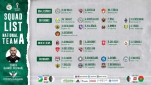 Parmi les convoqués, il y a le portier Moustapha Zeghba retenu pour la première fois en tant que 3e gardien. Pour leur part Adam Ounas, Mehdi Tahrat, Réda Halaïmia, Ayoub Abdellaoui et Farid Boulaya font leur retour. Dans l’ensemble, le driver d’El-Khadra a, comme le veut la coutume, préservé son ossature.