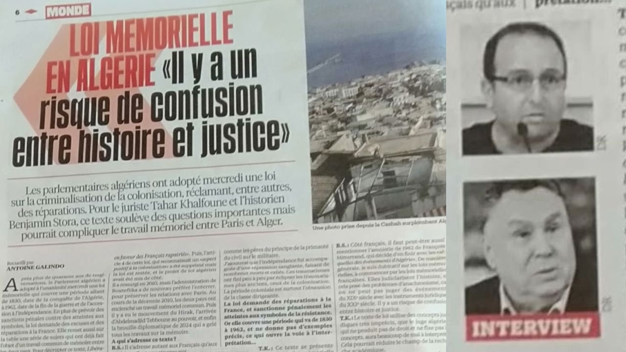 L’interview croisée accordée à Libération par le juriste algérien Tahar Khalfoune et l’historien français Benjamin Stora, à la suite de l’adoption par le Parlement algérien d’une loi criminalisant la colonisation française, avance une série de réserves qui méritent d’être discutées sur le fond. Les deux universitaires reconnaissent le caractère légitime des questions soulevées par le texte, tout en exprimant un scepticisme marqué quant à ses effets juridiques, mémoriels et politiques. Une lecture attentive de leurs arguments permet toutefois d’identifier plusieurs présupposés discutables, qui appellent clarification.