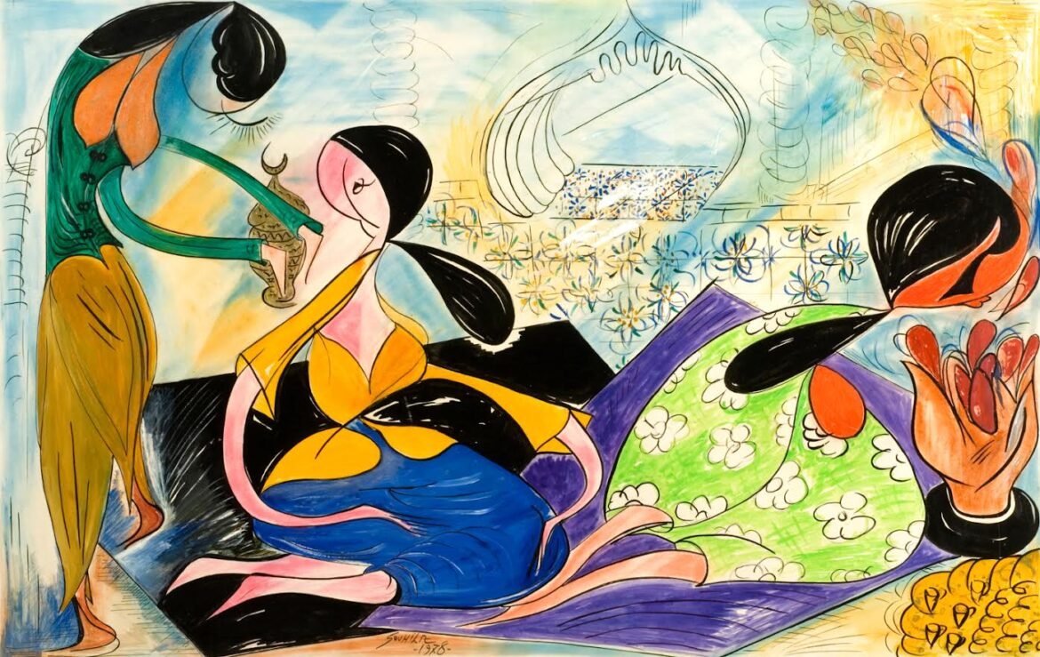 Dans le deuxième chapitre «Adieu l’orientalisme : Les avant-gardes contre-attaquent», l’accent est mis sur le cas de certains artistes qui renoncent à des références importées et imposées pour se saisir d’une expression artistique enracinée dans l’histoire locale de l’Egypte et la Tunisie mais également se connecter directement aux avant-gardes européennes. Le troisième chapitre «Décolonisations : L’art moderne entre local et global.