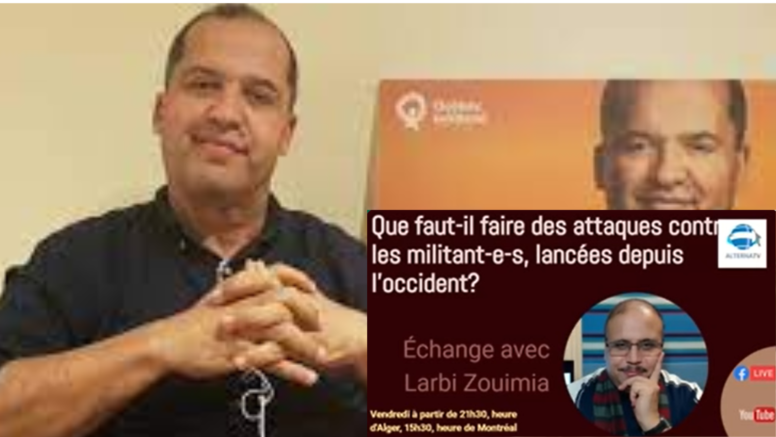 A écouter cette vidéo d’Alterna TV (dirigée Rabah Moula un « berbériste » se déclarant « opposant algérien à l’étranger » depuis Montréal) avec ce saugrenu d’invité nommé « Si Larbi Zouaimia » pour répondre au Dr Ahmed Bensaada, il ne reste qu’à se fier à la volonté de Dieu et prier, même pour les non-croyants, car rien d’humaniste ne peut venir de ce genre de racaille à visage humain en ces débuts du 21ème siècle ! Quand on observe les mêmes absurdités partout ailleurs en Occident, on se dit que la fin du monde est une délivrance !