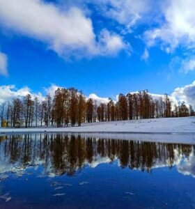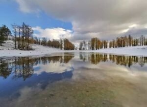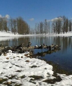 Lac Ghdir, Oum El-H’nach ( Lac des serpents), est situé dans les montagnes de Tamezguida, à la frontière entre Mila et Jijel et au centre d’une région touristique où l’eau est pure, avec différents types d’arbres de chênes et de hêtres et d’arbustes à environ 1656 m de la mer. Où se pratique l’élevage bovin….Tamesguida, éminence dominant l’arrière pays très abrupt du Sud de Jijel. Son versant septentrional comporte une succession de sols instables, formés de marnes, schistes et grés ; par endroits quelques affleurements calcaires surgissent. Il est entrecoupé par une succession d’importants ravinements et escarpements dangereux, du fait d’une forte pluviosité souvent torrentielle.