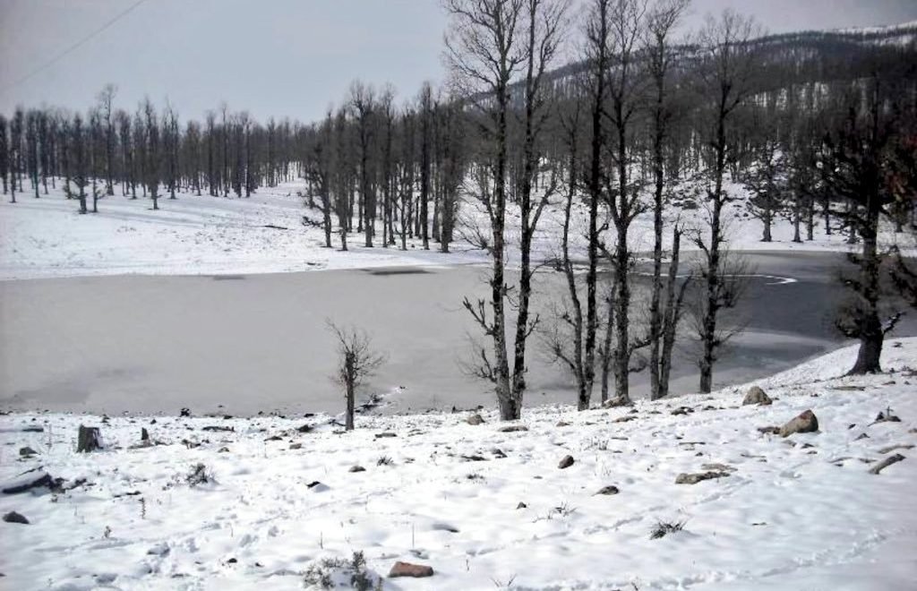 Lac Ghdir, Oum El-H’nach ( Lac des serpents), est situé dans les montagnes de Tamezguida, à la frontière entre Mila et Jijel et au centre d’une région touristique où l’eau est pure, avec différents types d’arbres de chênes et de hêtres et d’arbustes à environ 1656 m de la mer. Où se pratique l’élevage bovin….Tamesguida, éminence dominant l’arrière pays très abrupt du Sud de Jijel. Son versant septentrional comporte une succession de sols instables, formés de marnes, schistes et grés ; par endroits quelques affleurements calcaires surgissent. Il est entrecoupé par une succession d’importants ravinements et escarpements dangereux, du fait d’une forte pluviosité souvent torrentielle.