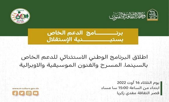 Concernant le programme d’appui du cinéma, la ministre a précisé que “la convention signée par la direction du développement et la promotion des Arts et le Centre algérien de développement du cinéma (CADC), porte sur la production de cinq documentaires et 5 courts métrages”, soulignant que l’appui “devra contribuer, entre autres, à la remise en état et la numérisation d’une série de films anciens, outre la récupération d’une série de films déjà restaurés, et que nous allons récupérer des laboratoires se trouvant à l’étranger, en sus de la programmation de plusieurs projections cinématographiques et de caravanes qui devront sillonner le pays”.