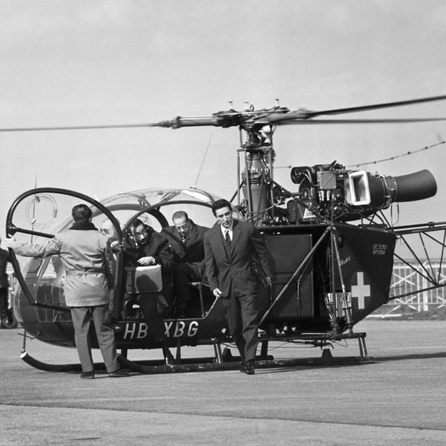 Laurent Huguenin-Élie poursuit son entretien avec l’historien Marc Perrenoud qui a notamment contribué à la rédaction de différents volumes des Documents Diplomatiques Suisses. Il s’est intéressé de près aux coulisses diplomatiques à l’occasion des pourparlers secrets puis des négociations qui ont conduit aux accords d’Evian.Photographiés le 7 mars 1962, des membres de la délégation algérienne descendent de l’hélicoptère de l’armée suisse qui les a amenés à Evian où se déroulent les négociations avec la France. (© KEYSTONE/PHOTOPRESS-ARCHIV/Gnn, Bdl)