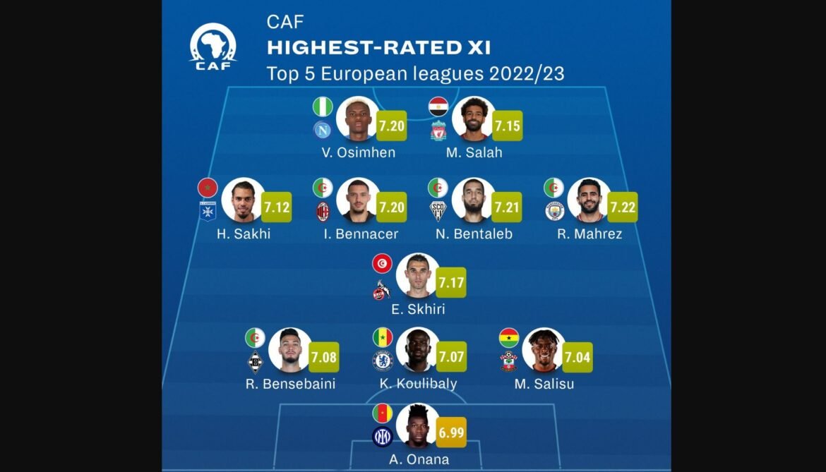 Huit pays africains sont représentés dans cette équipe. Pour les sept autres joueurs, on trouve le gardien Andre Onana (Cameroun), Mohammed Salisu (Ghana), Kalidou Koulibaly (Sénégal), Elyes Skhiri (Tunisie), Hamza Sakhi (Maroc), Mohamed Salah (Égypte) et Victor Osimhen (Nigéria). Les trois joueurs Ramy Bensebaini, Ismael Bennacer et Riyad Mahrez figurent également dans le onze type maghrébin de la saison établi par le quotidien français L’Équipe, en compagnie également de Said Benrahma.