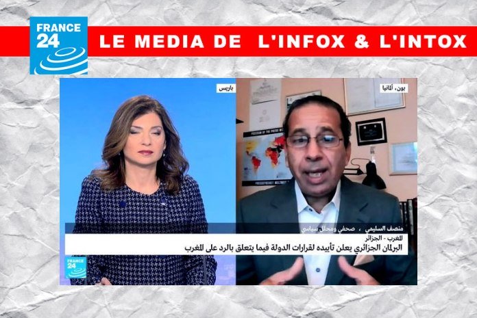 Aujourd’hui l’ANP est dans son droit de protéger son peuple. Les régimes et leurs armées que défendent les Slimi, Faycal Al Kassem, Anouar Malek, Abdou Semmar et autre Hichem Abboud, font des expéditions à l’extérieur de leurs frontières pour prétendre la défense de leurs territoires et la protection de leurs concitoyens. Moncef Slimi, pourrait-t-il critique la Bundeswehr qui a envoyé ses troupes en Afghanistan sur la chaîne qui l’emploie ? Ou pourra-t-il critiquer la France qui avait envoyé ses troupes au Mali, sans déplaire à France 24.