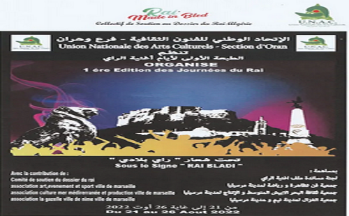 La première édition des Journées du raï aura lieu du 21 au 26 août 2022 à Oran sous le slogan « Raï bladi ».