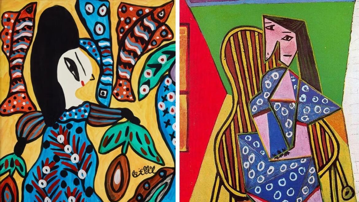 Car au fond, c’est bien un dialogue — mais un dialogue inégal. Là où Baya exprime un monde intérieur de plénitude féminine, enracinée dans les traditions visuelles du Maghreb (textiles, céramiques, enluminures), Picasso “rationalise”, “structure”, masculinise cette inspiration.