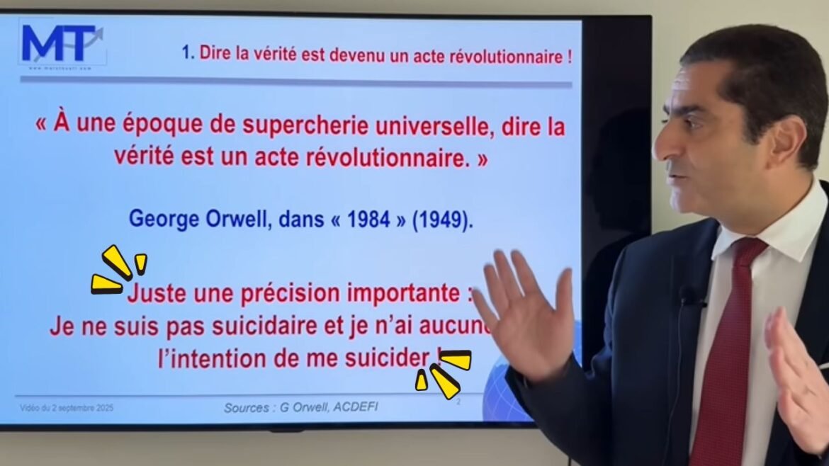 En janvier 2025, Marc Touati confiait « dire la vérité a un coût », évoquant des pressions inédites de « l’establishment ». Hier, il ouvre son analyse par une phrase glacante : « Je ne suis pas suicidaire et je n’ai aucunement l’intention de me suicider. »