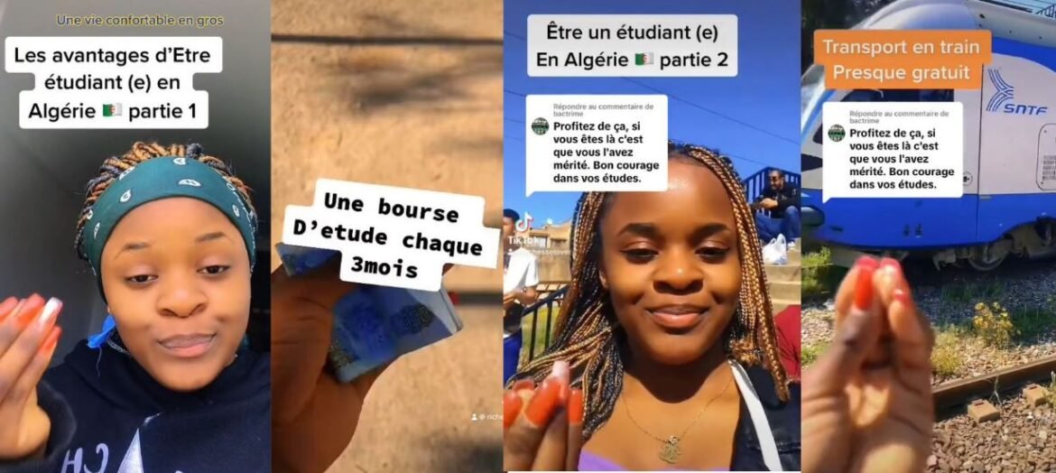 Et ce n’est pas tout. Dans une autre vidéo, elle souligne qu’en Algérie, on a le transport gratuit par bus et « presque gratuit » en train, une bourse d’étude trimestrielle, des amphis confortables, une belle université, surtout avec « aucun racisme de la part des enseignants ».